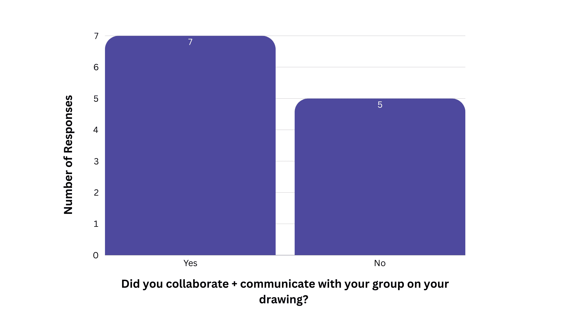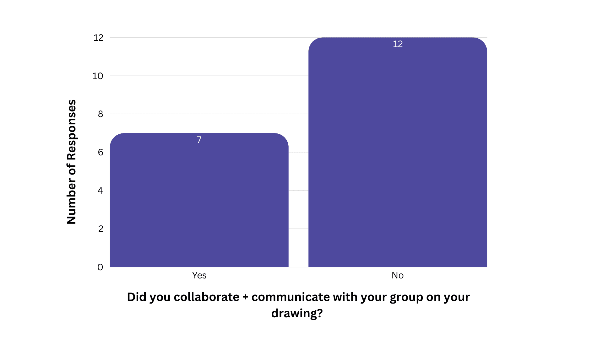 42% of participants did not collaborate with their group at all (1 group total). This suggests for further iteration on collaborative tasks.