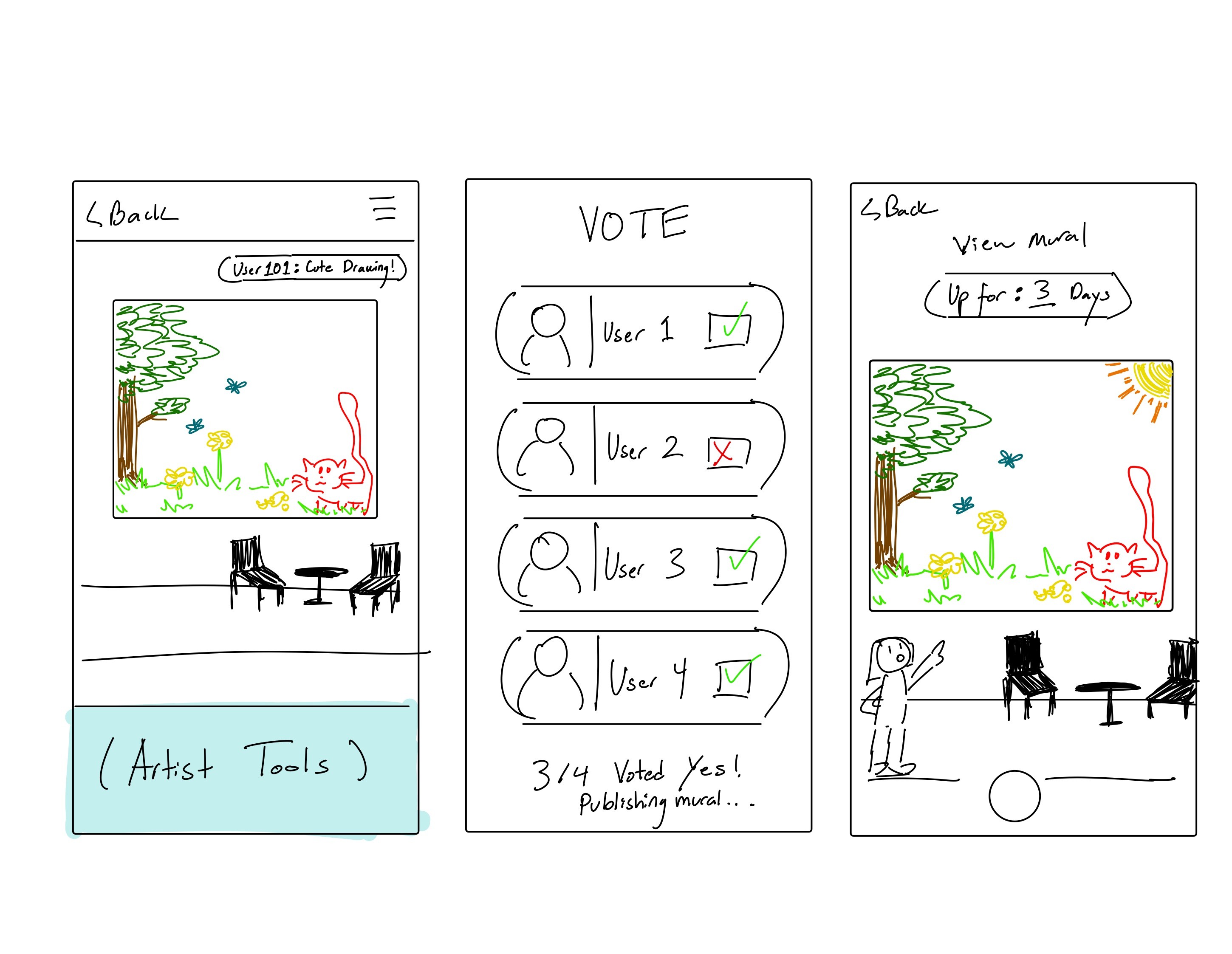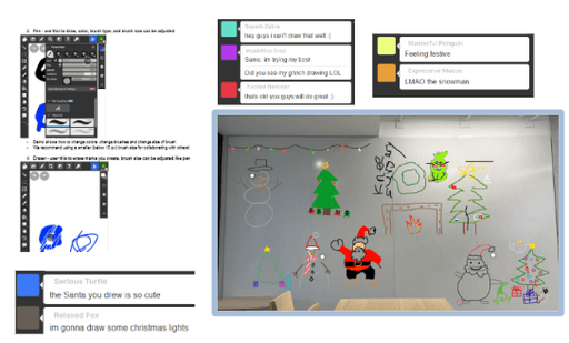 We used primarily used Magma to simulate a synchronous collaborative art environment. With Magma, we gave participants a blank canvas with a drawing prompt and gave them time to draw. Using the wizard model, we told participants to raise their hands when they finished drawing and conducted a content check. Finally, we moved their drawing over to the communal mural.
